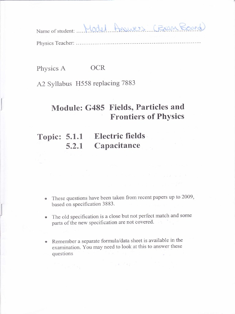 Fp F E Field Capacitance Questions Model Answers Included A Material Pdf Capacitor Electromagnetism